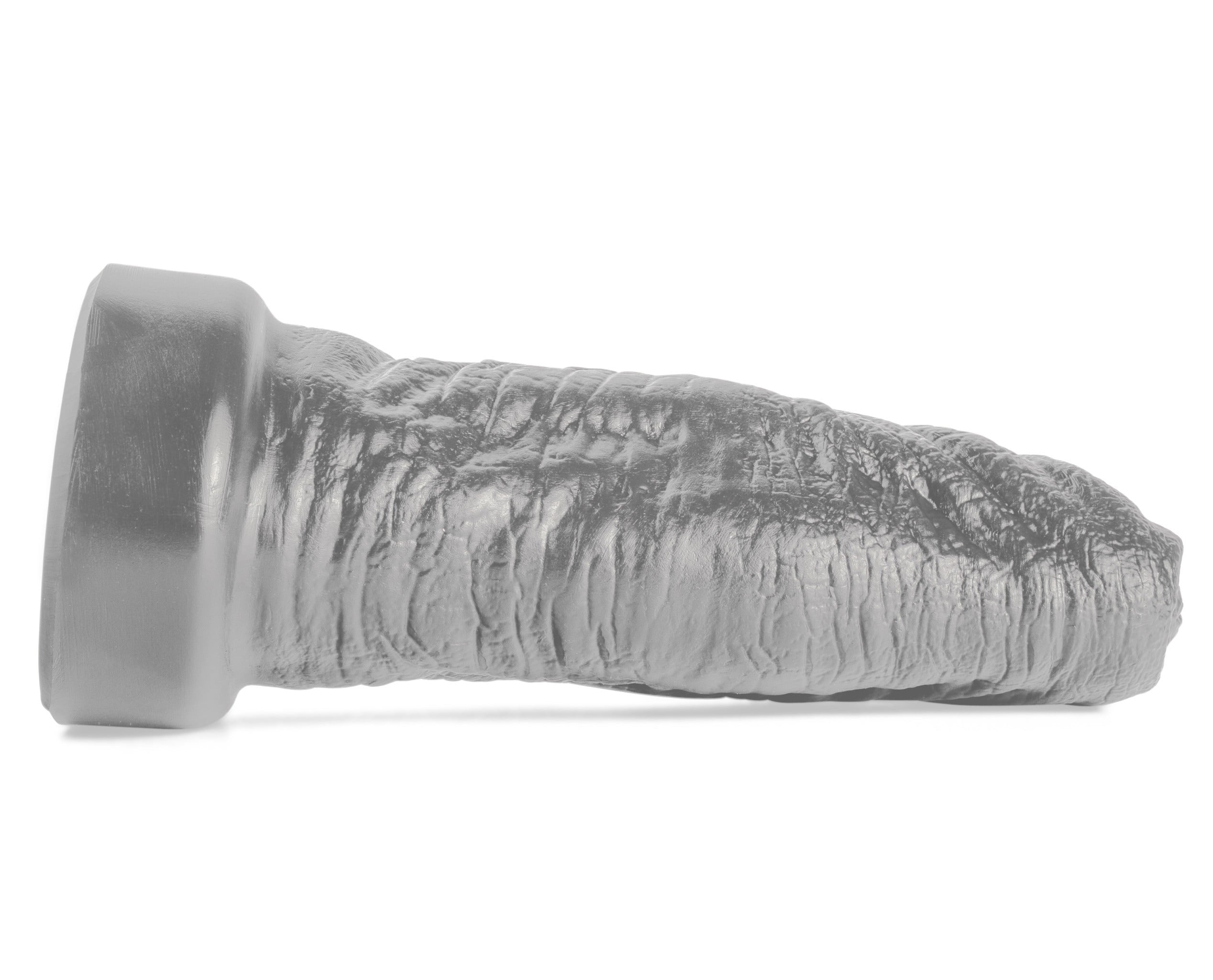 Neobrezaný monštruózny penis samotného zlobra, ktorý s vami nebude mať zľutovanie. Vyrobený v USA z najkvalitnejšieho mäkkého platinového silikónu. Veľkosť L, 75% mäkkosť, strieborná farba, Vac-U-Lock kompatibilné. Celková dĺžka 26,7 cm, použiteľná dĺžka 22,5 cm, priemer 6,4–9,3 cm. Viac informácií