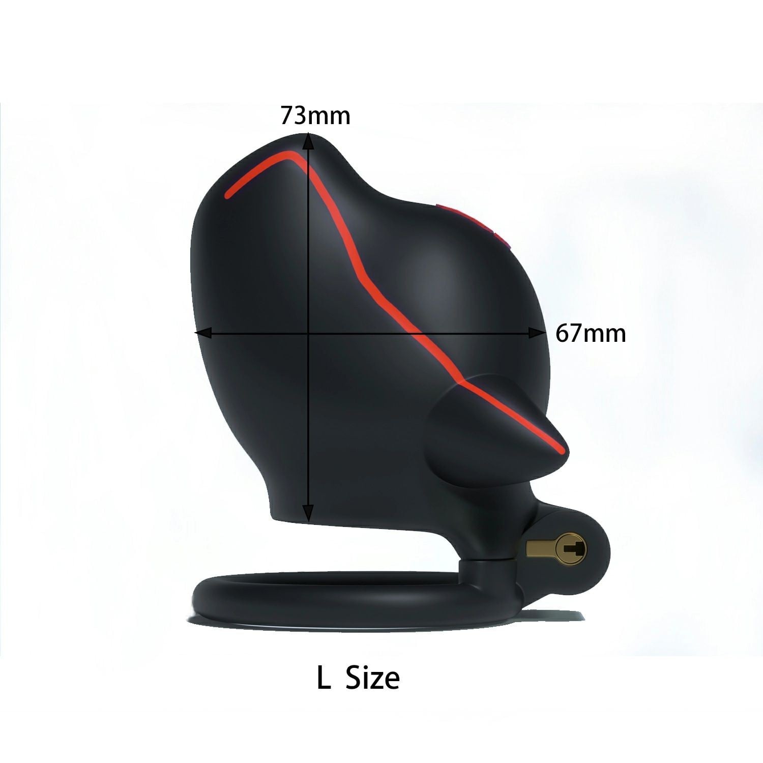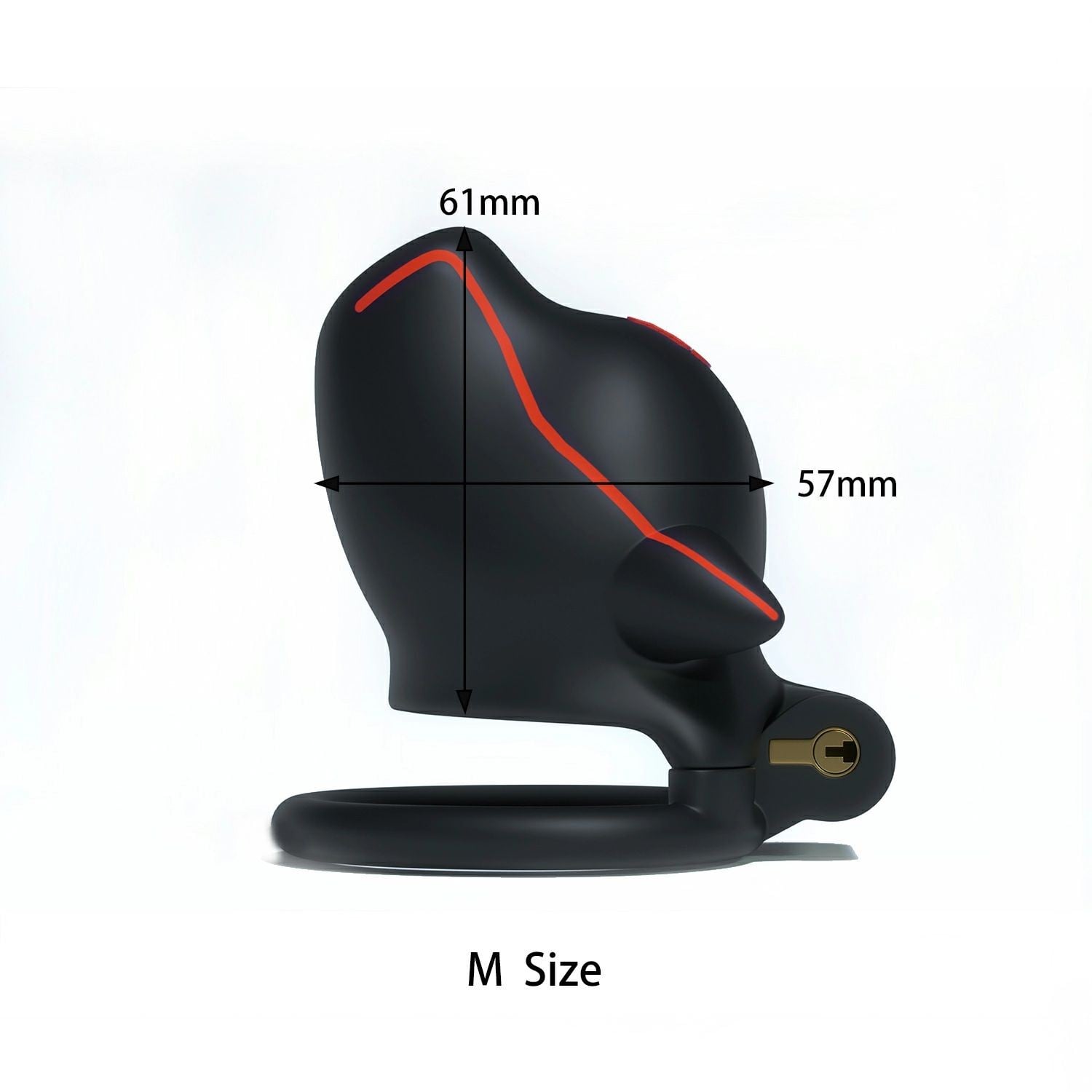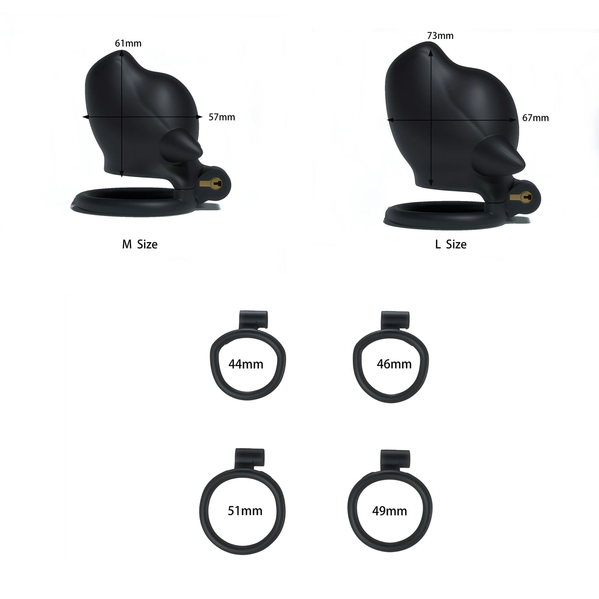 Klietka je vyrobená z odolného a ľahkého plastu a vybavená predným otvorom na močenie. Pre dokonalé prispôsobenie je dodávaná s 4 spojovacími krúžkami rôznych veľkostí (44, 46, 49 a 51 mm). Balenie obsahuje aj kovový zámok s dvoma kľúčmi a päť jednorazových plastových zámkov.