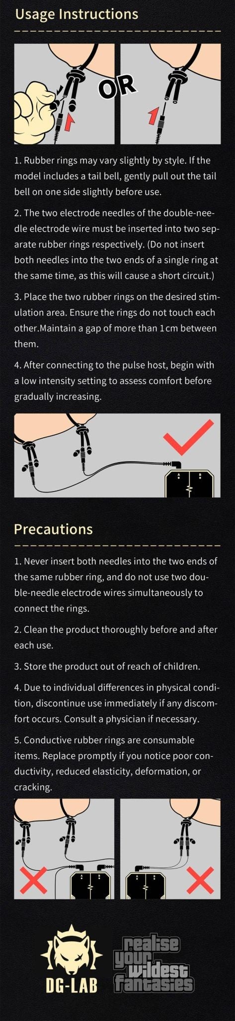 Pomocou plastového posúvača môžete ľahko nastaviť ideálne zovretie okolo penisu alebo semenníkov – od jemného stlačenia až po naozaj pevné obopnutie. Slučky sú kompatibilné so štandardnými 2mm konektormi, takže ich môžete ľahko pripojiť k elektrostimulátoru DG-LAB Coyote 3.0 a iným elektrosex zariadeniam.